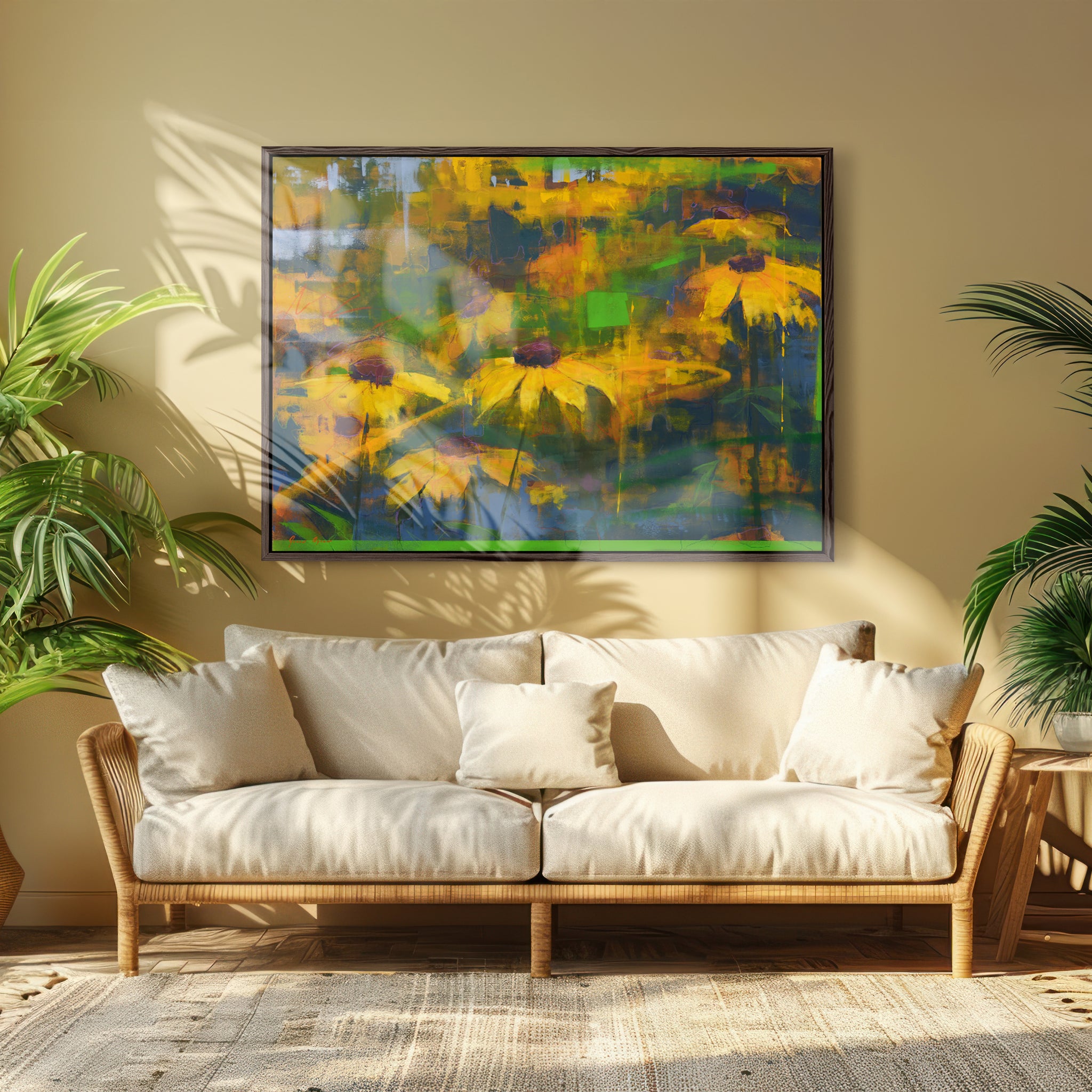 Art has the power to make a home feel complete. Surround yourself with hopeful blooms that emerge from shadow, and let their presence transform your space. With its balance of abstraction and luminous color, this painting carries both strength and grace — a piece that will resonate in any room.